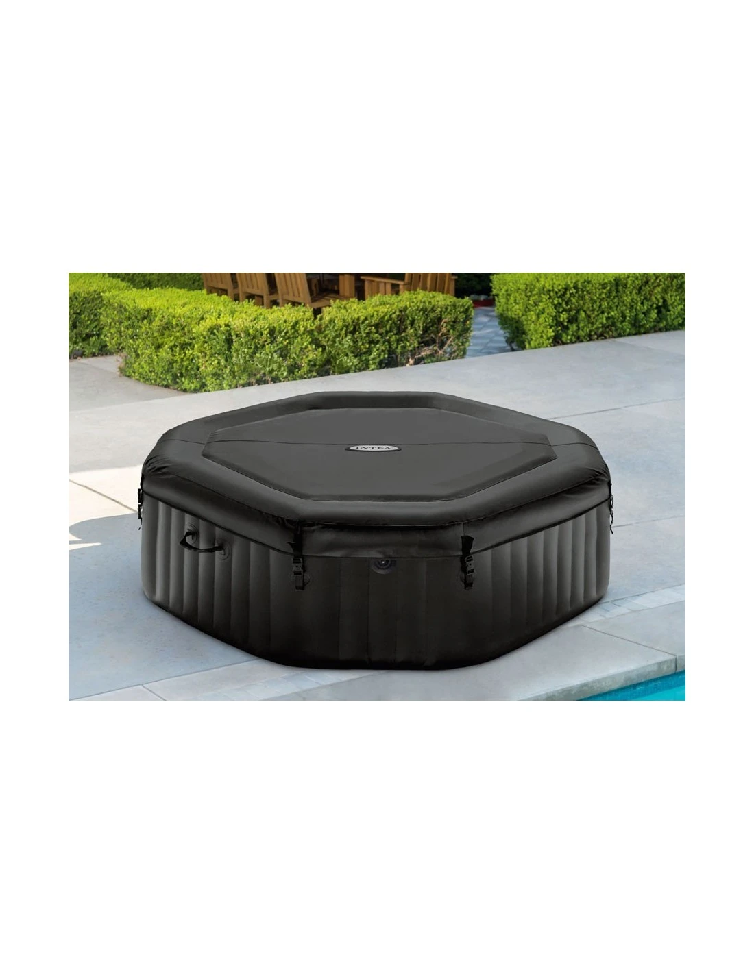 Le spa gonflable Carbone 4 places Intex, avec son design épuré octogonal, est la version la plus haut de gamme.